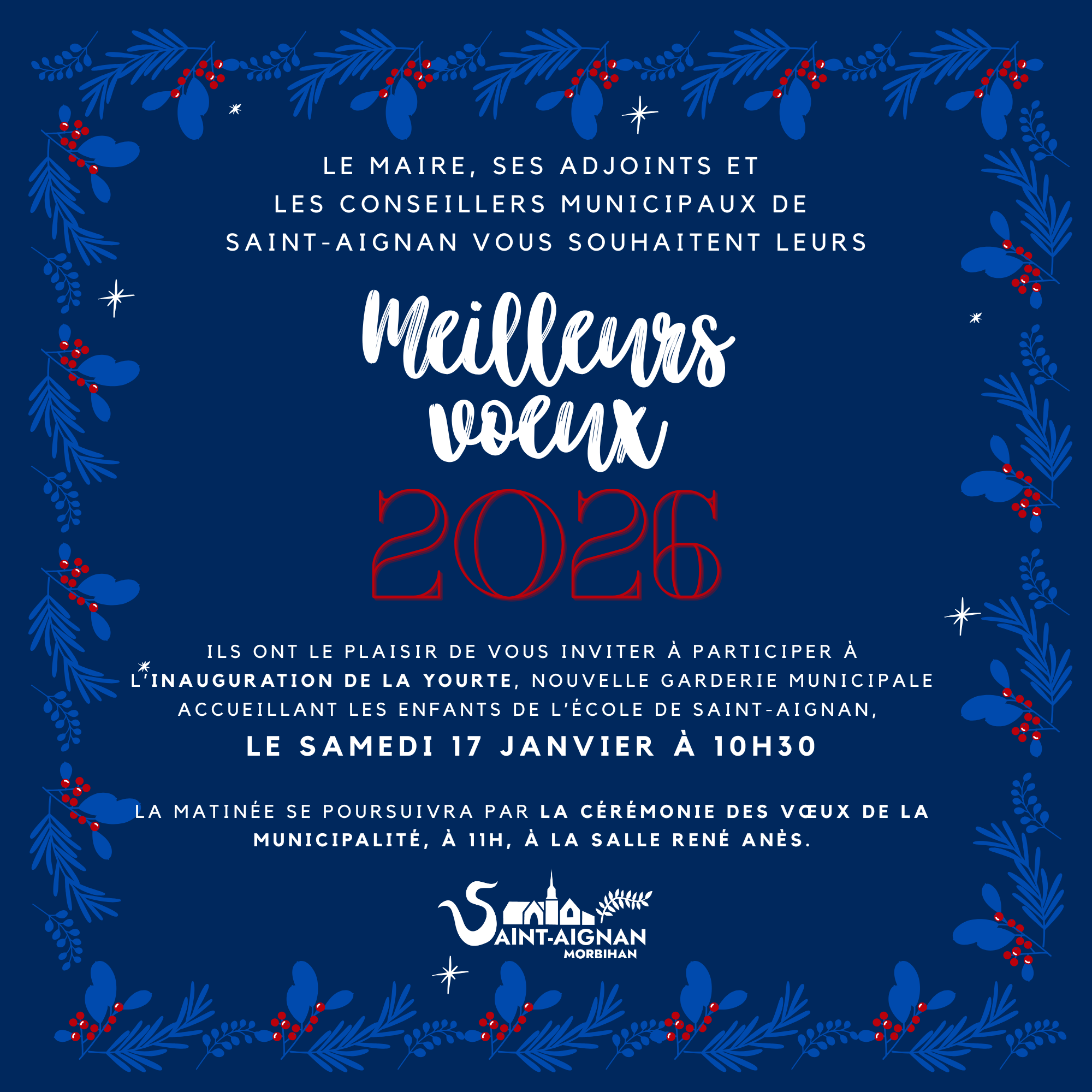 Le maire, ses adjoints et les conseillers municipaux de Saint-Aignan vous souhaitent leurs meilleurs vœux pour cette nouvelle année.